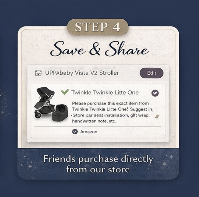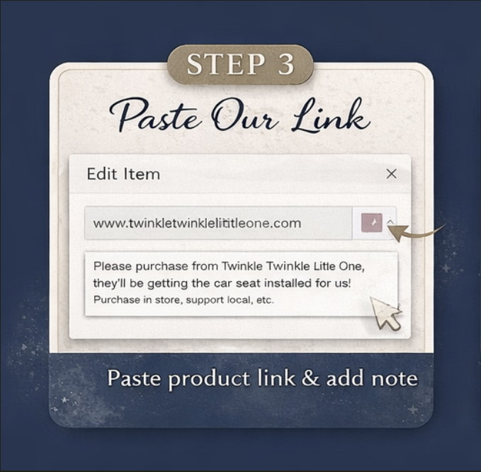 In-store car seat and stroller pickup with optional stroller set up (no car seat installation).